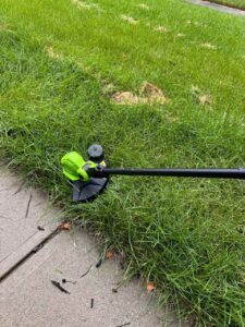 Метален сплавен нож – отличен за неравен терен, гъста растителност и високи плевели.