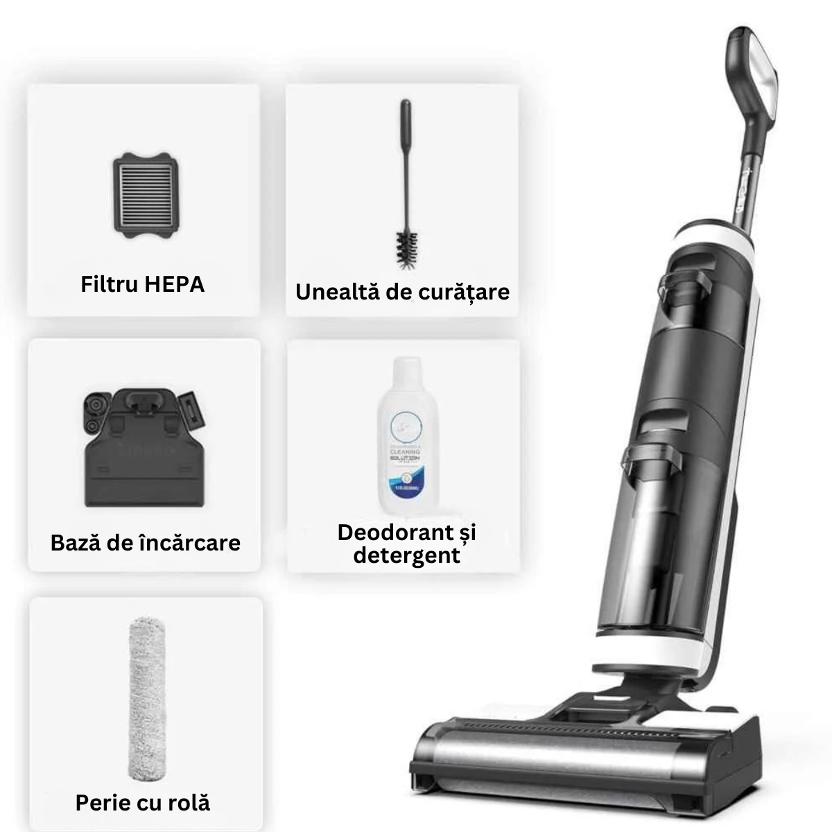 4-în-1: Aspiră, Spală, Uscă și Dezinfectează.
